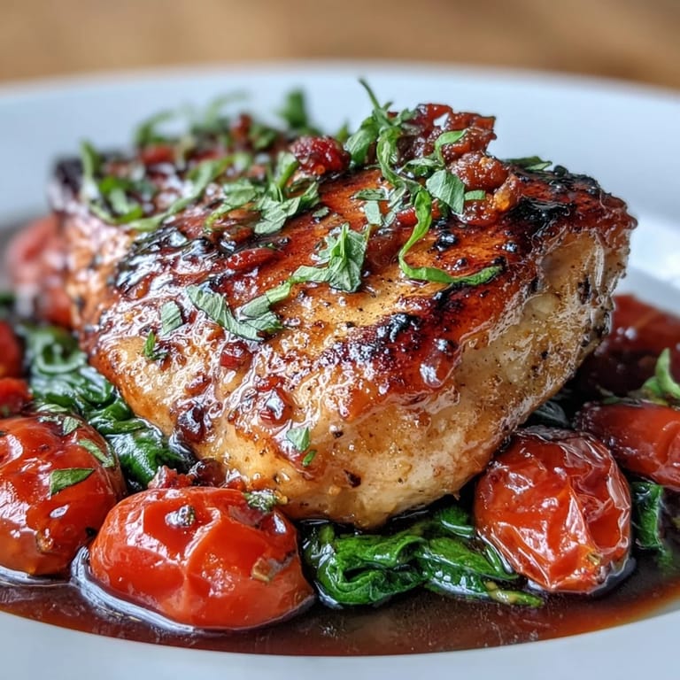 Pin This There's something about the sound of chicken hitting a hot pan that signals dinner is coming together, and this balsamic chicken dish became my go-to when I needed something that felt fancy but didn't require three pots and a prayer. One Tuesday evening, after a long day, I threw together whatever was in my fridge—some cherry tomatoes, a bag of spinach, and chicken breasts—and the smell of balsamic reducing in the pan filled my kitchen with this warm, tangy sweetness that made everything feel intentional. My partner wandered in asking what smelled so good, and I realized I'd stumbled onto something worth repeating. Now it's the meal I make when I want to feel accomplished without spending hours cooking.