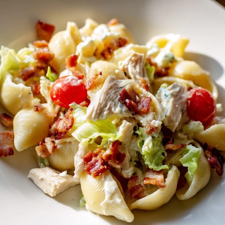 Pin This The smell of bacon cooking always pulls everyone into the kitchen, doesnt it? I created this pasta salad on a sweltering July afternoon when turning on the oven felt like punishment. My neighbor had dropped off some fresh tomatoes from her garden, and I had leftover grilled chicken sitting in the fridge. Sometimes the best recipes happen when you just start throwing things together in a bowl.