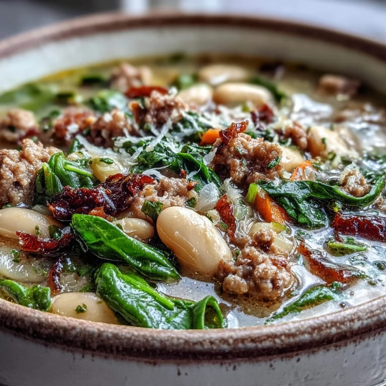 Pin This The first spoonful of this Tuscan white bean soup instantly transported me to a cramped kitchen in Florence where I watched an elderly woman ladle similar creamy goodness into weathered ceramic bowls. Back home, I recreated those flavors during an unexpected snowstorm when I was craving something hearty yet sophisticated. The aroma of sausage and herbs filled my apartment as the snow piled outside, creating this perfect moment of contrast between the frigid outdoors and the Mediterranean warmth in my bowl.