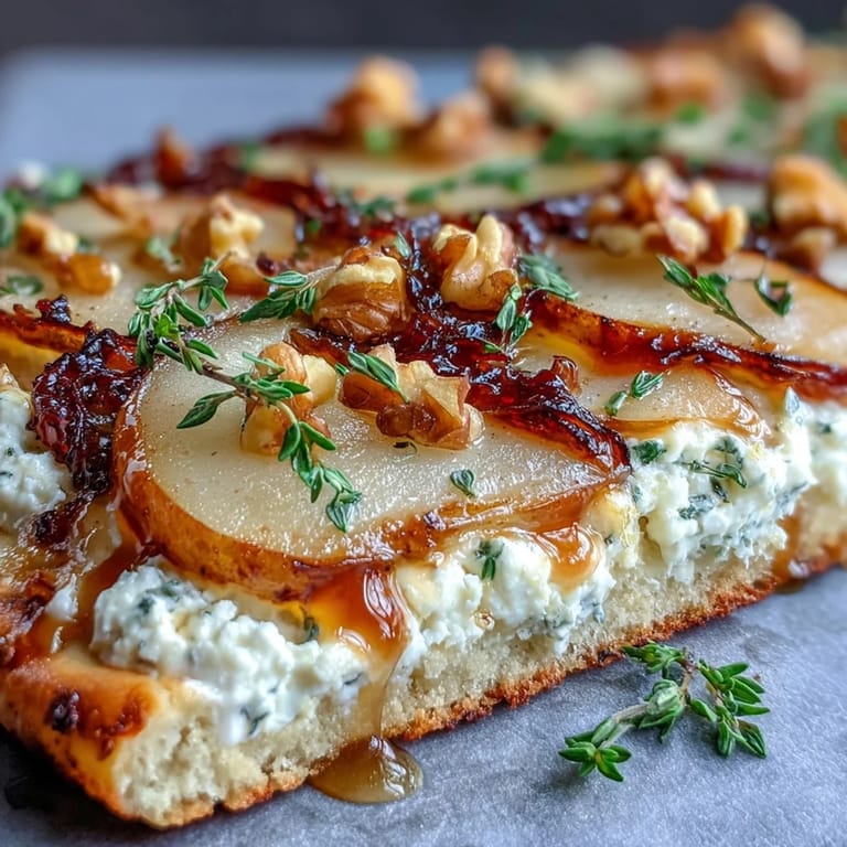 There's something about serving food on a flatbread that automatically elevates it in people's minds. You're not just eating ingredients; you're eating something with presence and intention. The contrast of temperatures—the warm honey against cool pear slices, the crisp bread against creamy cheese—makes every bite feel deliberate rather than casual. It's one of those dishes that proves you don't need complexity to create something memorable.
