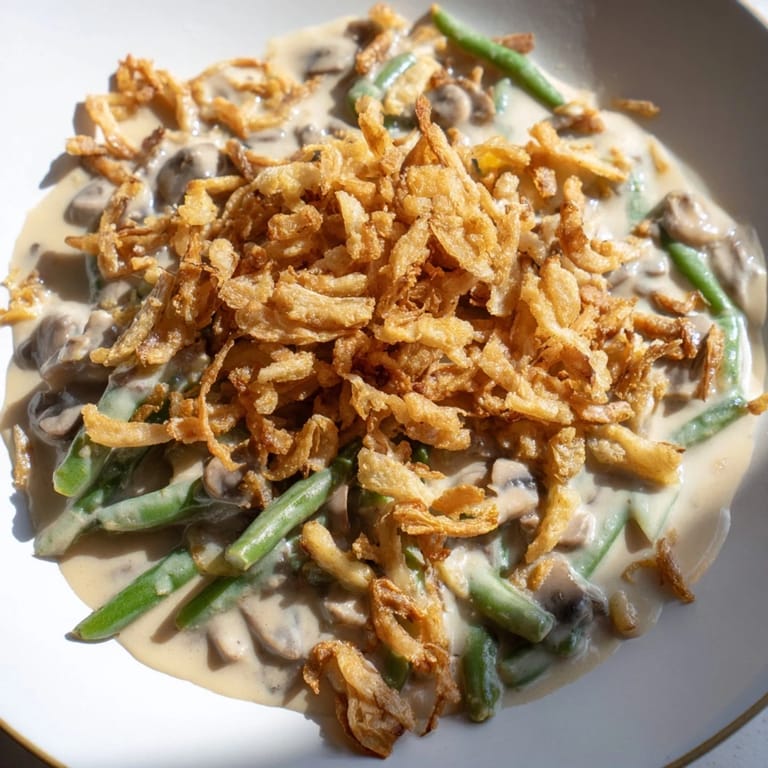 Pin This The kitchen was steaming from the turkey when my sister handed me a bowl of green beans and said figure it out. I had never made the casserole before, just eaten it every Thanksgiving without thinking twice. I melted butter, whisked milk into a roux that smelled like my grandmother's kitchen, and somehow it worked. That dish came out bubbling and golden, and no one knew it was my first try.