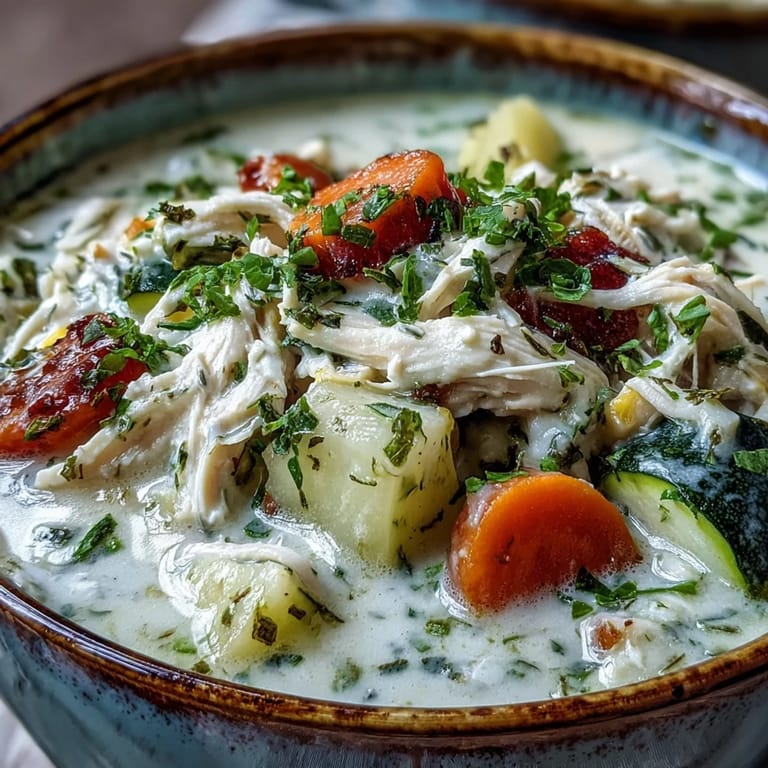 The beauty of this recipe is that it's forgiving enough to work with whatever vegetables you've got in your crisper drawer—swap the zucchini for green beans, use parsnips instead of carrots, add a handful of spinach at the end. The ranch chicken and creamy broth will hold everything together and make it taste intentional no matter what you choose.