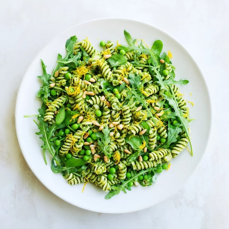 Pin This This Spring Green Pesto Pasta Salad is a vibrant and refreshing dish, tossing al dente fusilli with a fragrant homemade basil pesto. Featuring sweet peas, peppery baby arugula, and the satisfying crunch of toasted pine nuts, it is a perfect vegetarian choice for spring gatherings, picnics, or a light main meal.