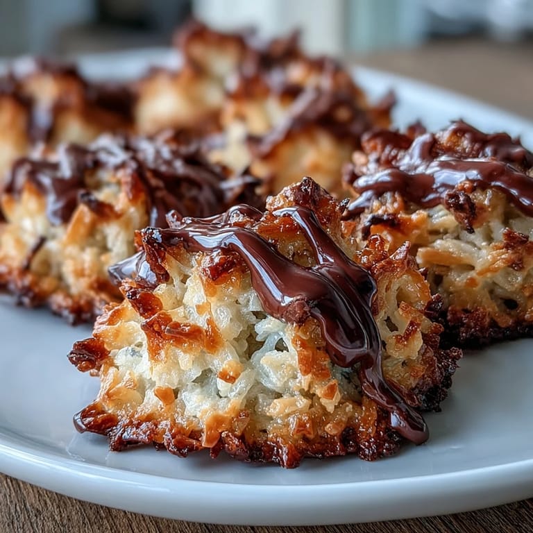 Pin This There's something magical about biting into a coconut macaroon that's chewy on the inside and golden on the edges, especially when you realize it's entirely plant-based. My first batch came together almost by accident—I was experimenting with coconut milk one afternoon and thought, why not? What emerged from the oven was something so indulgent and simple that I couldn't stop making them. The dark chocolate drizzle on top feels fancy enough for guests but honest enough for a quiet afternoon snack.