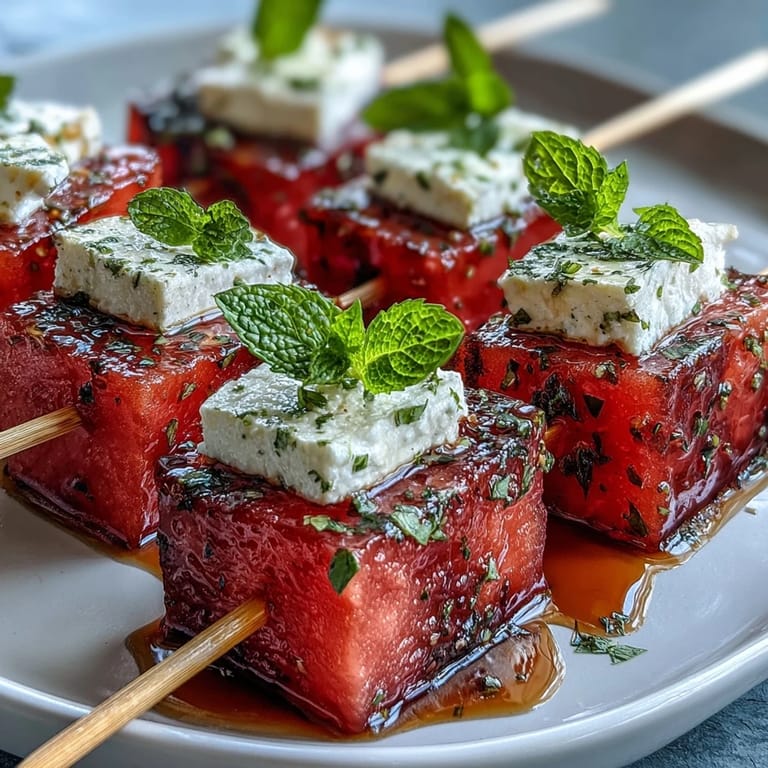 Pin This My neighbor showed up at a July barbecue with these skewers, and I watched people gravitate toward them like they were the only food on the table. The bright red and white contrast caught the eye first, but it was that first bite—the cool watermelon bursting against creamy feta, then a whisper of mint—that made me understand why she kept smiling as everyone reached for seconds. I went home that night determined to master them, and what started as a curiosity became my go-to move for any summer gathering.